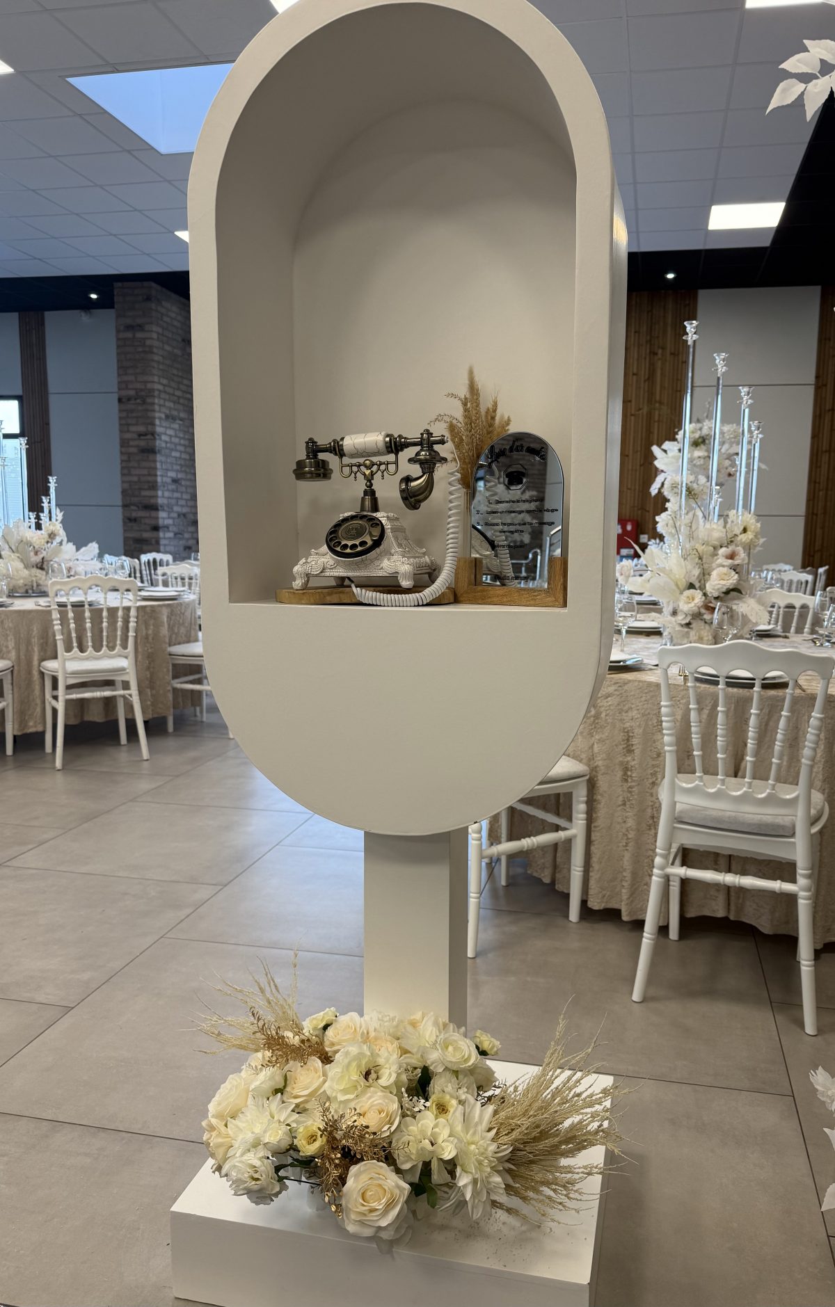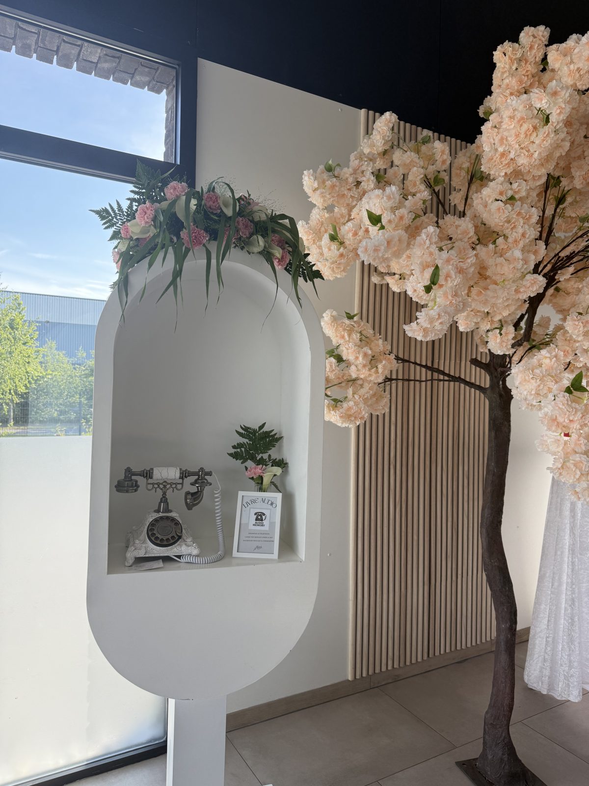 🌸 Téléphone avec cabine florale, ornée de fleurs artificielles ou de fleurs fraîches sur demande.
