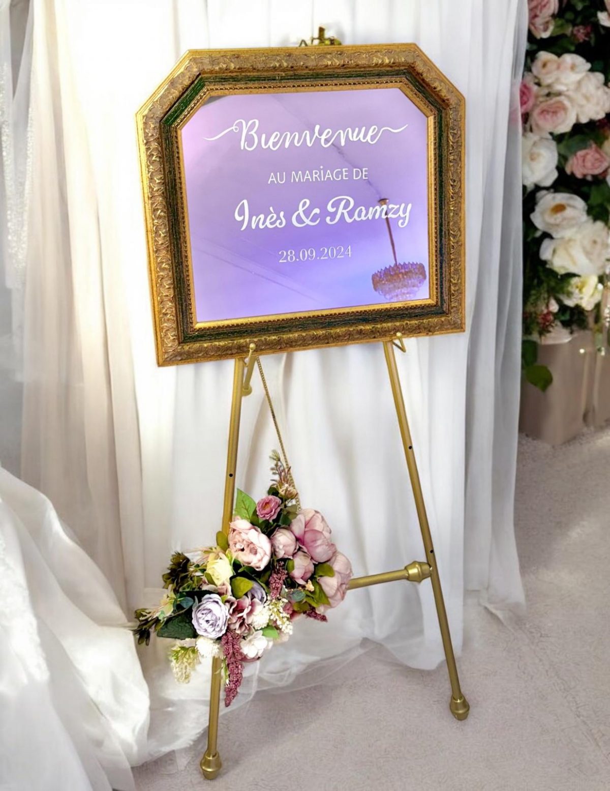 – Un panneau de bienvenue personnalisé, pour accueillir vos invités.